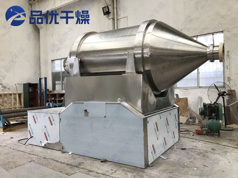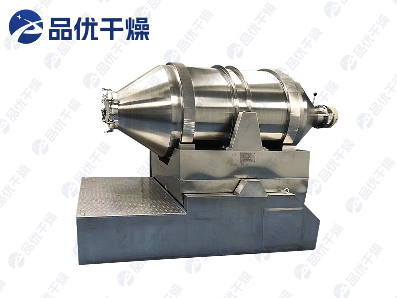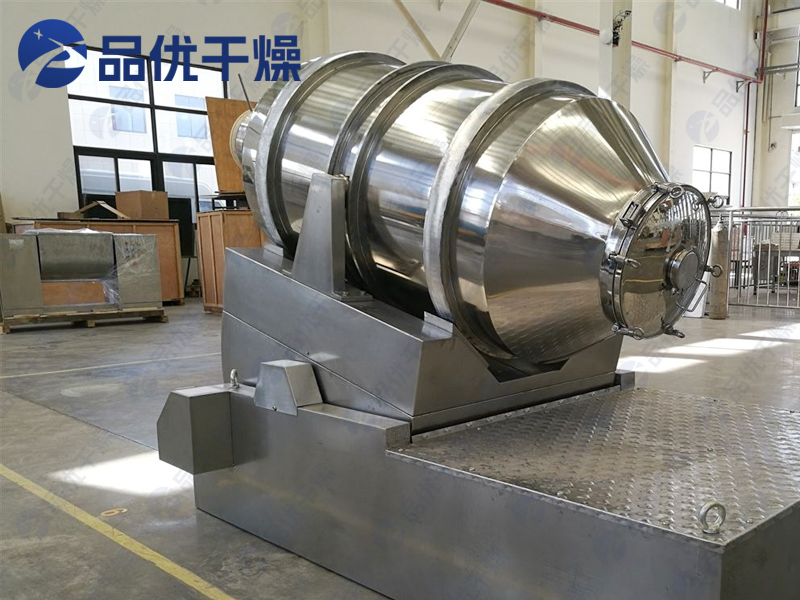 EYH系列二维运动混合机的转筒可同时进行二个运动,一个为转筒的转动,另一个为转筒随摆动架的摆动。被混合物料在转筒内随转筒转动、翻转、混合的同时,又随转筒的摆动而发生左右来回的掺混运动,在这两个运动的共同作用下,物料在短时间内得到充分的混合。EYH二维混料机适合所有粉、粒状物料的混合。
