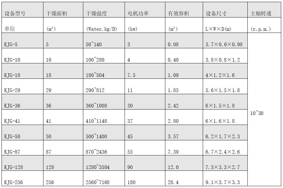 2、热能利用率高,能耗低,装料量可达筒体体积的70~80%,由于间接加热,没有大量携带空气带走热量,干燥器外壁又设置保温层,蒸发1kg水仅需1.2kg水蒸气。